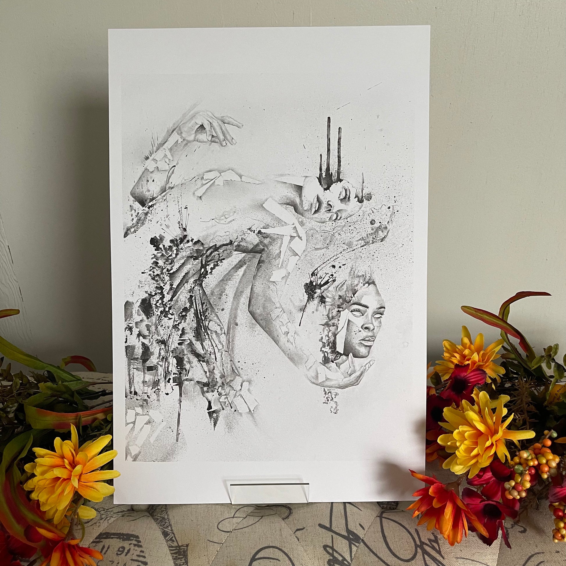 A stunning 12" x 18" art print on premium cardstock paper, this print is part of a series that seeks to express the challenges presented by living in a world that feels like it wasn't made for you.