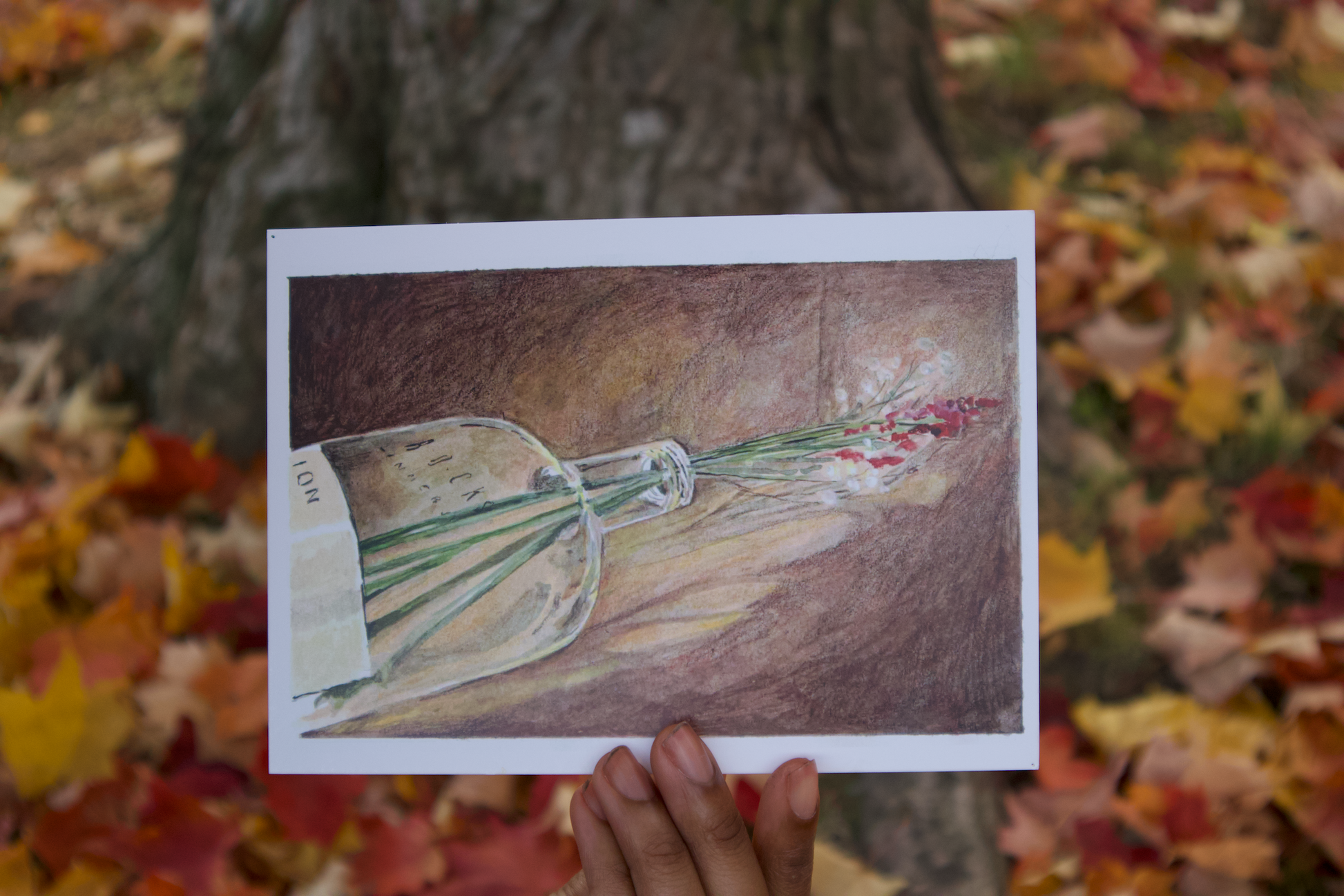 The way the light subtly plays through the glass and dried flowers made this drawing both a pleasure and a challenge to create.